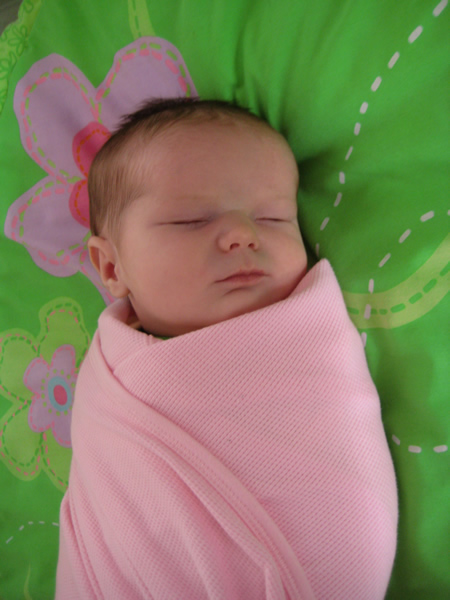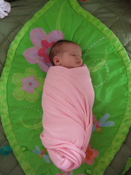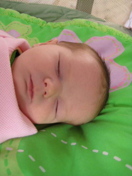 Jackie will be two weeks old tomorrow and I’m starting to understand why parents always say that their kids grow up so fast. Our daughter has come a long way since her birthday on the 23rd (which she shares with her Aunt Holly). She seems pretty comfortable with the nursing routine Katie has established. As the waste management technician in our household (my vast experience picking up after two large dogs made me a shoe-in for the position), I can attest that all systems are fully operational.