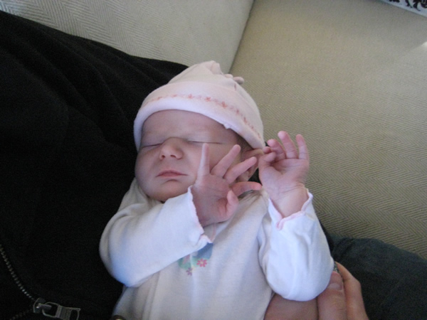 We really appreciated the meals she cooked, dishes she washed, groceries she bought, and everything else. She even changed some diapers, fed Jackie the bottle, and accompanied Katie and Jackie on their visit to the pediatrician last Friday. On top of that, she coined the phrase “Beanie Katie” to describe Jackie’s resemblance to her mom. We’ll wait until Jackie is a little older to tell her about her Aunt Ali’s behavior in high school (hehehe). Thanks for coming Alison!