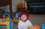Jackie is no longer a baby now that she is walking here, there, and everywhere. Before Christmas she had a breakthrough — 12 or 14 consecutive steps. A few days after Christmas, with burgeoning confidence, she was walking anytime she had the chance. Nowadays, it’s not unusual to see her do a lap around our foursquare house with a sippy cup in one hand and a maraca shaking in the other. Here’s some video from December 29, 2009.