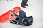 Big thanks to Sarah B. for scoring sleds and snow boots for us to use — it wasn’t easy for new parents to find these high-demand items in the Triangle yesterday, but she came through for us.