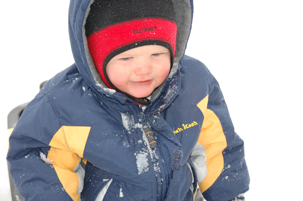 Big thanks to Sarah B. for scoring sleds and snow boots for us to use — it wasn’t easy for new parents to find these high-demand items in the Triangle yesterday, but she came through for us.
