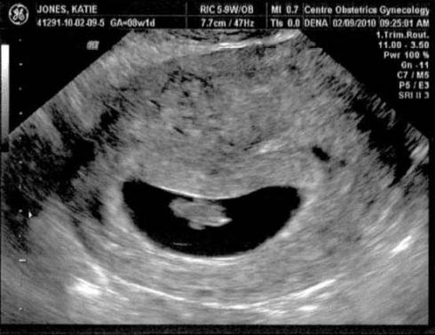The little cahkah in the womb was measuring 1.3 cm at 7.5 weeks and the heart rate was 154. A week later, during our check up today, the cahkah was already at 2.1 cm. The doctor reminded us that second children are usually larger, and I noticed Katie cringe a little (bless her heart).
