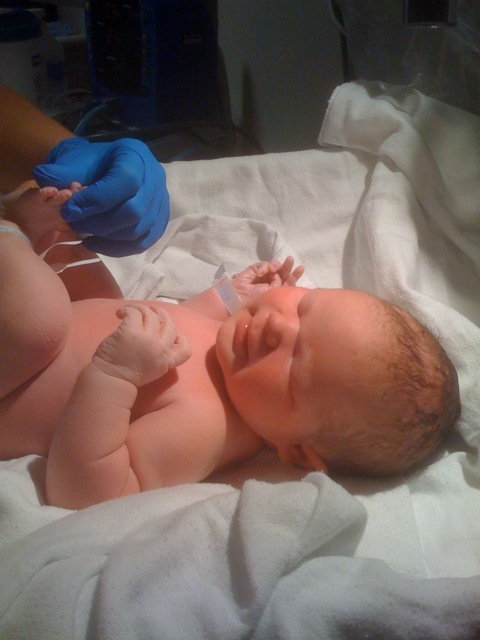 I plan to make a couple of more polished posts after I go through the many pictures and videos waiting for me on our hard drive. In the meantime, here’s a link to a Picasa album, and the first picture of our expanded family: http://picasaweb.google.com/katiebjones/McLainIsBorn?authkey=Gv1sRgCLmdkYDDzPuZowE#