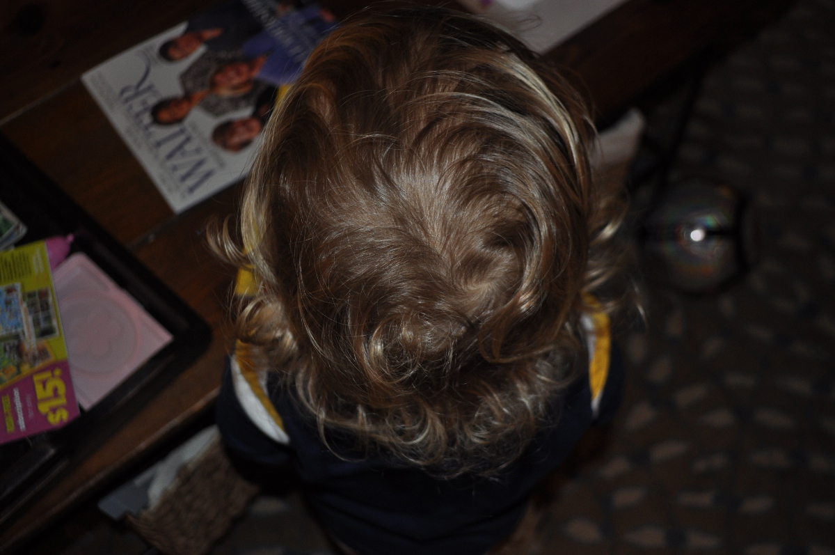 Answer: Don’t cut the youngest child’s hair. Those ends that either curl or stick out in every direction are as old as he is. You can still look at him and see baby as long as he has original locks. It doesn’t matter that he counts to twenty, speaks in sentences, and zones out when focusing on song lyrics; those McLain curls are the trademark of our baby.