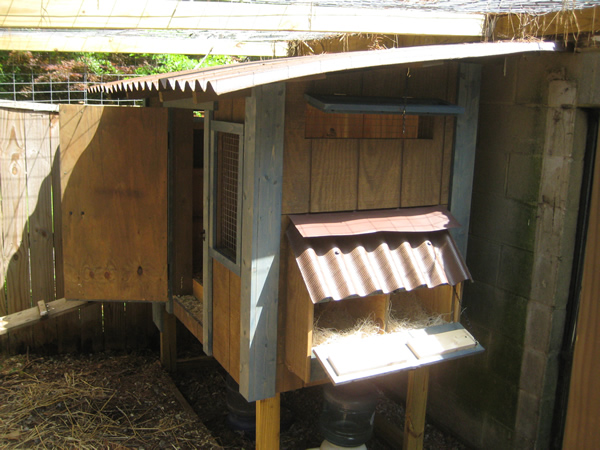 I’ve had an interest in having chickens of our own for a couple of years now, and it was great to see the diversity of fowl-friendly accommodations so close to home. Like any type of pet, the chickens and their dwellings reflect the people who own them. Some coops were elaborate, even to the point that they matched the architectural detail of the adjacent houses. Other coops were simpler and less ornate. Every chicken owner we met today had a simple process for feeding, egg-gathering, and composting. The really interesting part was the small backyard footprint that each coop required — some had three or four chickens in less than 100 square feet.