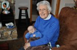 It was a snowy, relaxing holiday week, and we even got to catch up with the some friends in Asheville one night. Most of the time though, we hung out with Katie’s family indoors, waiting for Jackie to do something funny/cute/interesting. Nana taught her a few tricks during the week, including the sliding-rear-end-stair-descent (featured in the video below). And, no one entertained her or intrigued her more than PopPop when he donned his mechanical Santa hat (also in the video).