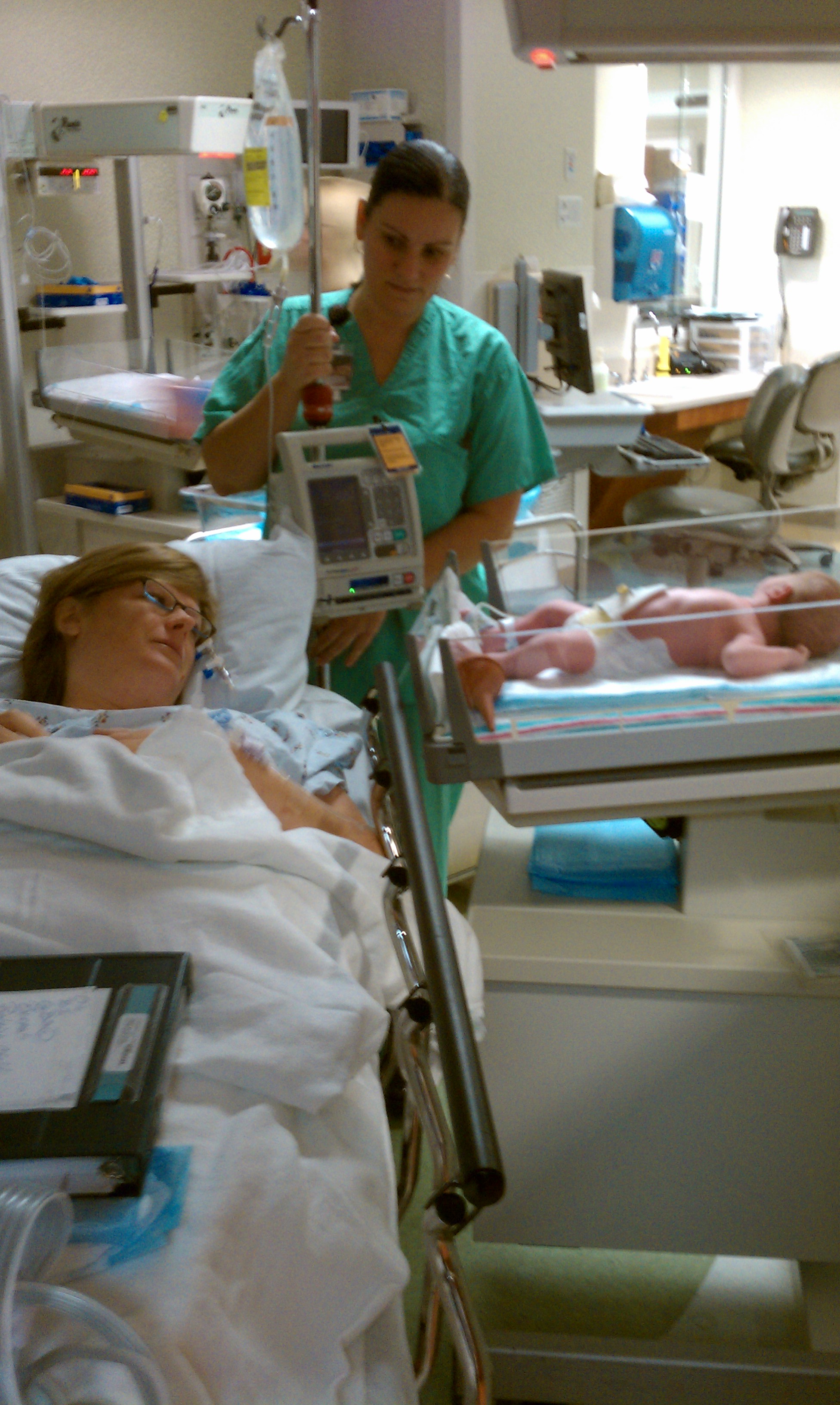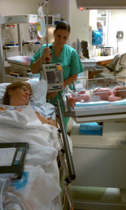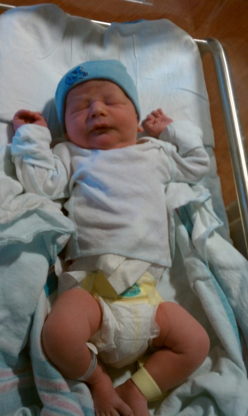 I plan to make a couple of more polished posts after I go through the many pictures and videos waiting for me on our hard drive. In the meantime, here’s a link to a Picasa album, and the first picture of our expanded family: http://picasaweb.google.com/katiebjones/McLainIsBorn?authkey=Gv1sRgCLmdkYDDzPuZowE#